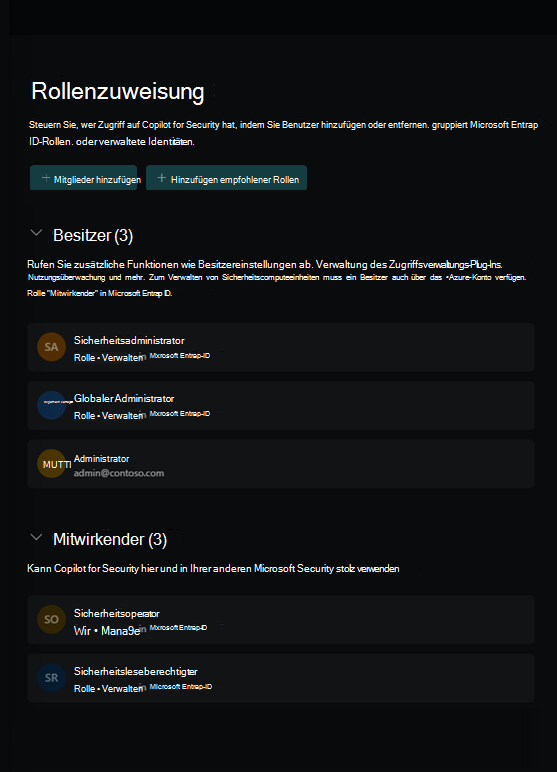 Empfohlene Security Copilot Mitwirkender Rollen