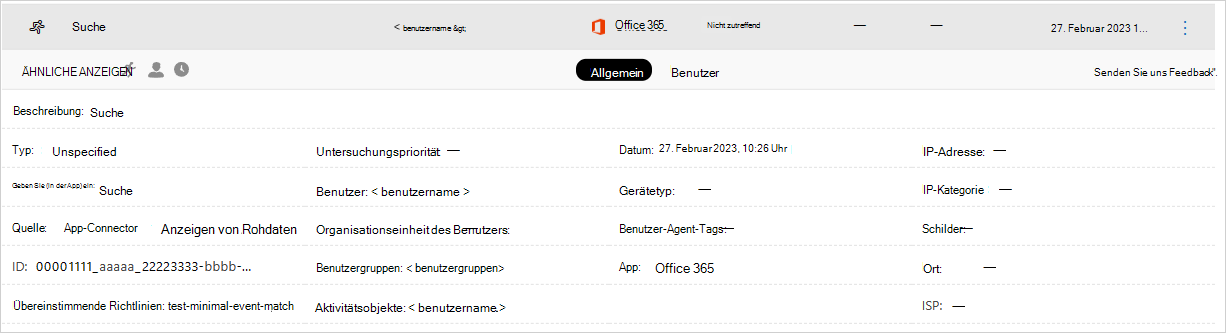 Die Aktionstypen für Ereignisse und Aktivitäten werden vom Quelldienst bestimmt, unabhängig davon, ob es sich um einen Erstanbieter- oder Drittanbieterdienst handelt. Microsoft Defender for Cloud Apps (MDA) unterstützt eine Vielzahl von Aktionstypen und ist nicht auf bestimmte Aktionstypen beschränkt. Eine vollständige Liste der von Defender for Cloud Apps überwachten Microsoft 365-Aktivitäten finden Sie unter Durchsuchen des Überwachungsprotokolls im Microsoft Purview-Portal.