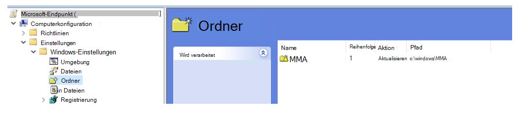 • Erstellen Eines Gruppenrichtlinie Ordners mit dem Namen "c:\windows\MMA"