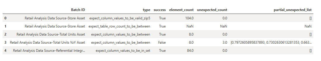 result_df[["Batch ID", "type", "success", "element_count", "unexpected_count", "partial_unexpected_list"]]