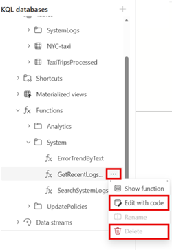 Mit diesem Feature können Sie mithilfe des .create-or-alterfunction Befehls eine vorhandene Funktion erstellen oder ändern. Der Befehl speichert die Funktion in den Datenbankmetadaten. Wenn die Funktion mit dem angegebenen functionName nicht in den Datenbankmetadaten vorhanden ist, wird mit dem Befehl eine neue Funktion erstellt. Andernfalls ändert der Befehl die benannte Funktion.