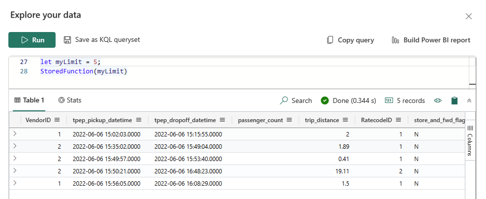 Führen Sie im Fenster "Daten durchsuchen" eine Abfrage aus, um zu überprüfen, ob Sie Ihre Funktion erfolgreich erstellt oder geändert haben.