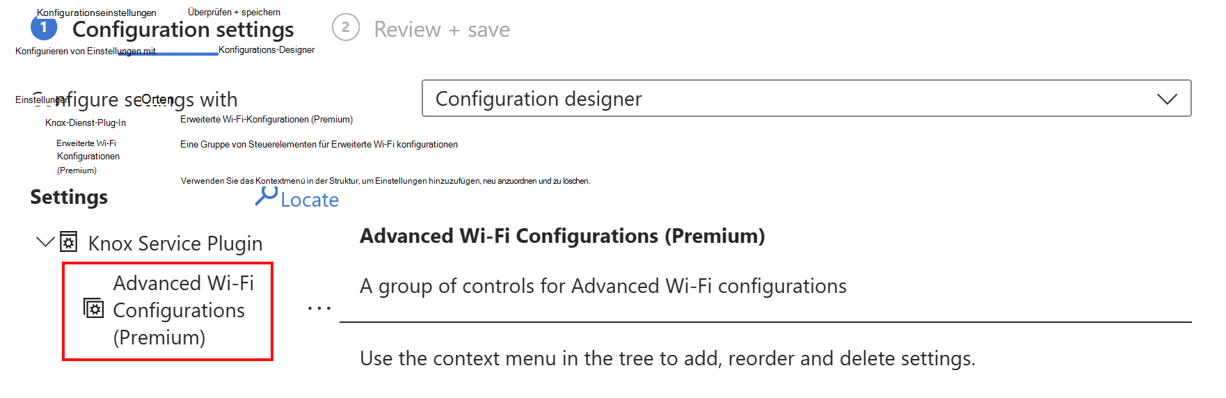 Wählen Sie unter Einstellungen konfigurieren den Konfigurations-Designer oder JSON-Editor aus: