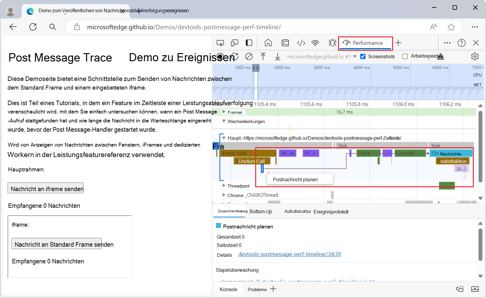 - Demo zu postMessage-Ablaufverfolgungsereignissen (gerendert)