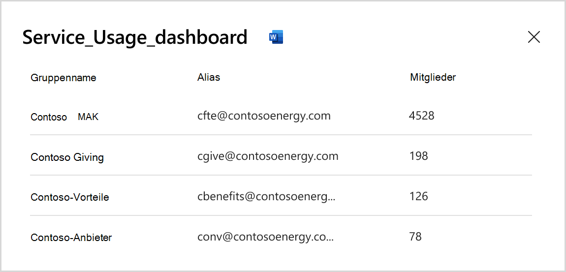 Inhalt, der für den Bericht "Jeder außer externen Benutzern" für die letzten 28 Tage freigegeben wurde: