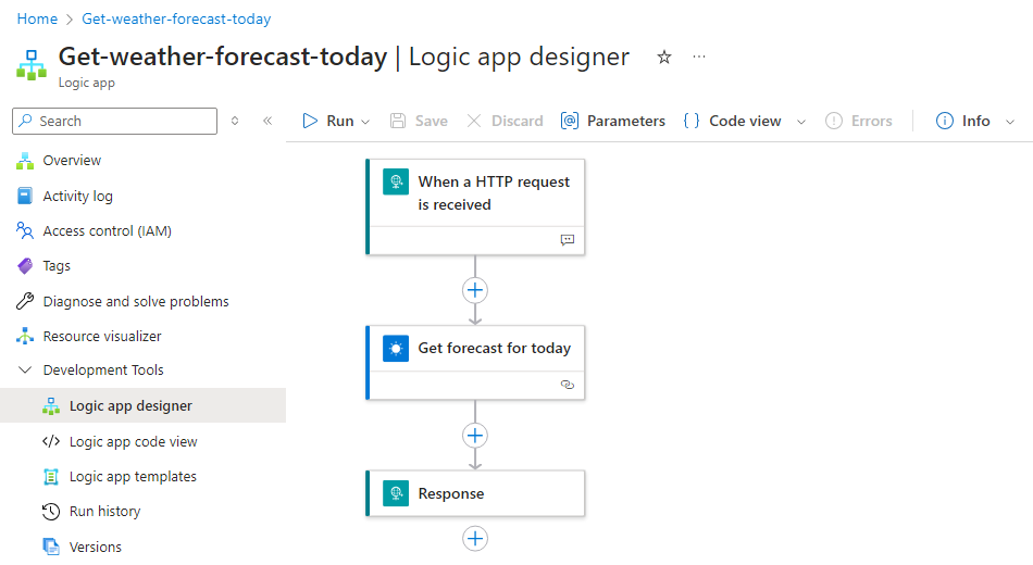 In diesem Beispiel wird die Aktion namens "Prognose abrufen" für heute ausgewählt, z. B.: