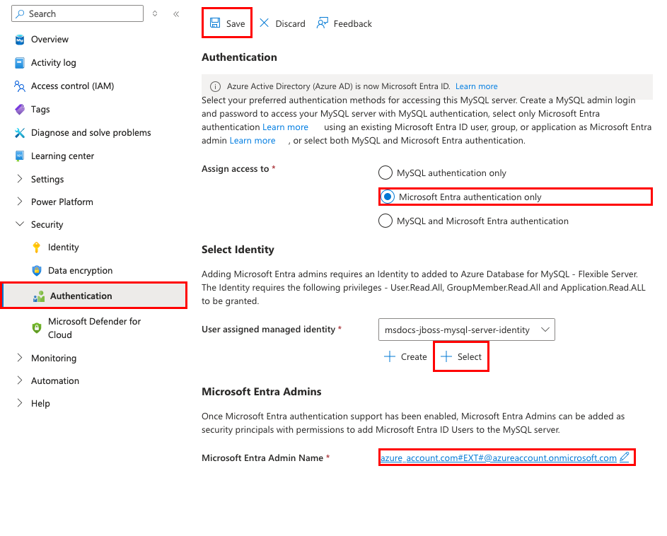 Schritt 2: Aktivieren Sie Microsoft Entra-Authentifizierung auf dem MySQL-Server.