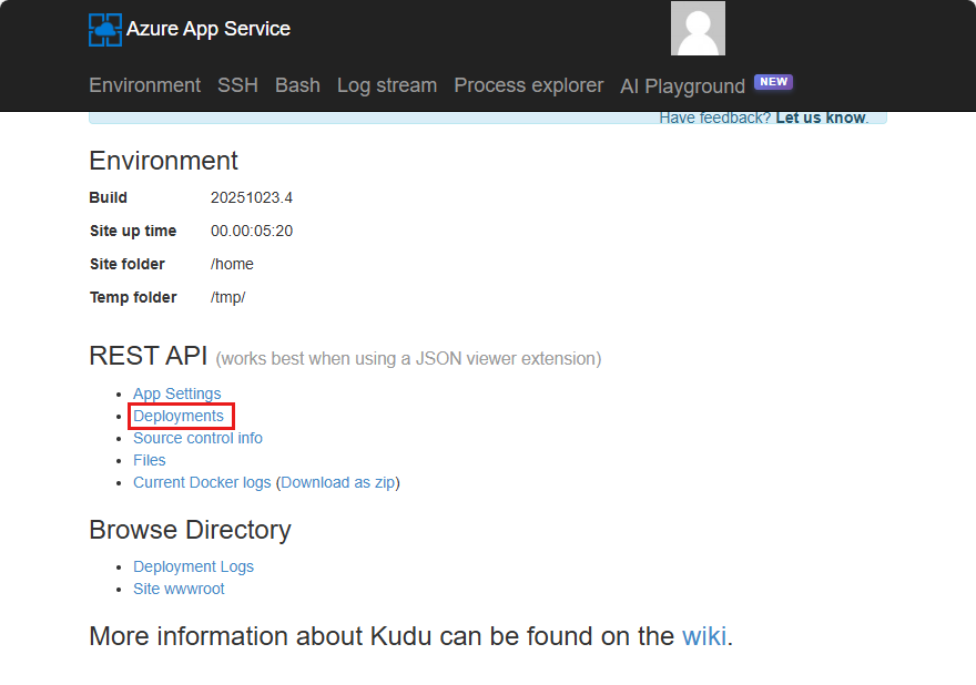 Siehe Einrichten der GitHub Actions-Bereitstellung im Deployment Center.