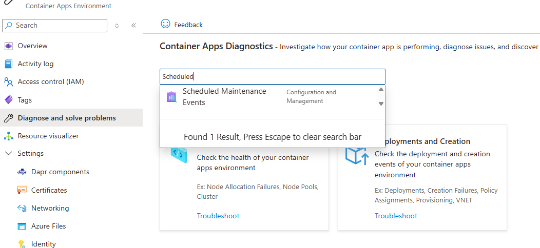 Die geplante Wartung ist ein optionales Feature nach dem Prinzip „bestmögliche Leistung“, das ideal für Umgebungen geeignet ist, in denen Anwendungen voneinander abhängig sind und für die zusätzliche Resilienz gewünscht wird. Wenn kritische Updates vorliegen, kann Container Apps diese Updates außerhalb des Wartungsfensters anwenden, um die Sicherheit und Zuverlässigkeit der Plattform und Ihrer Anwendungen sicherzustellen.