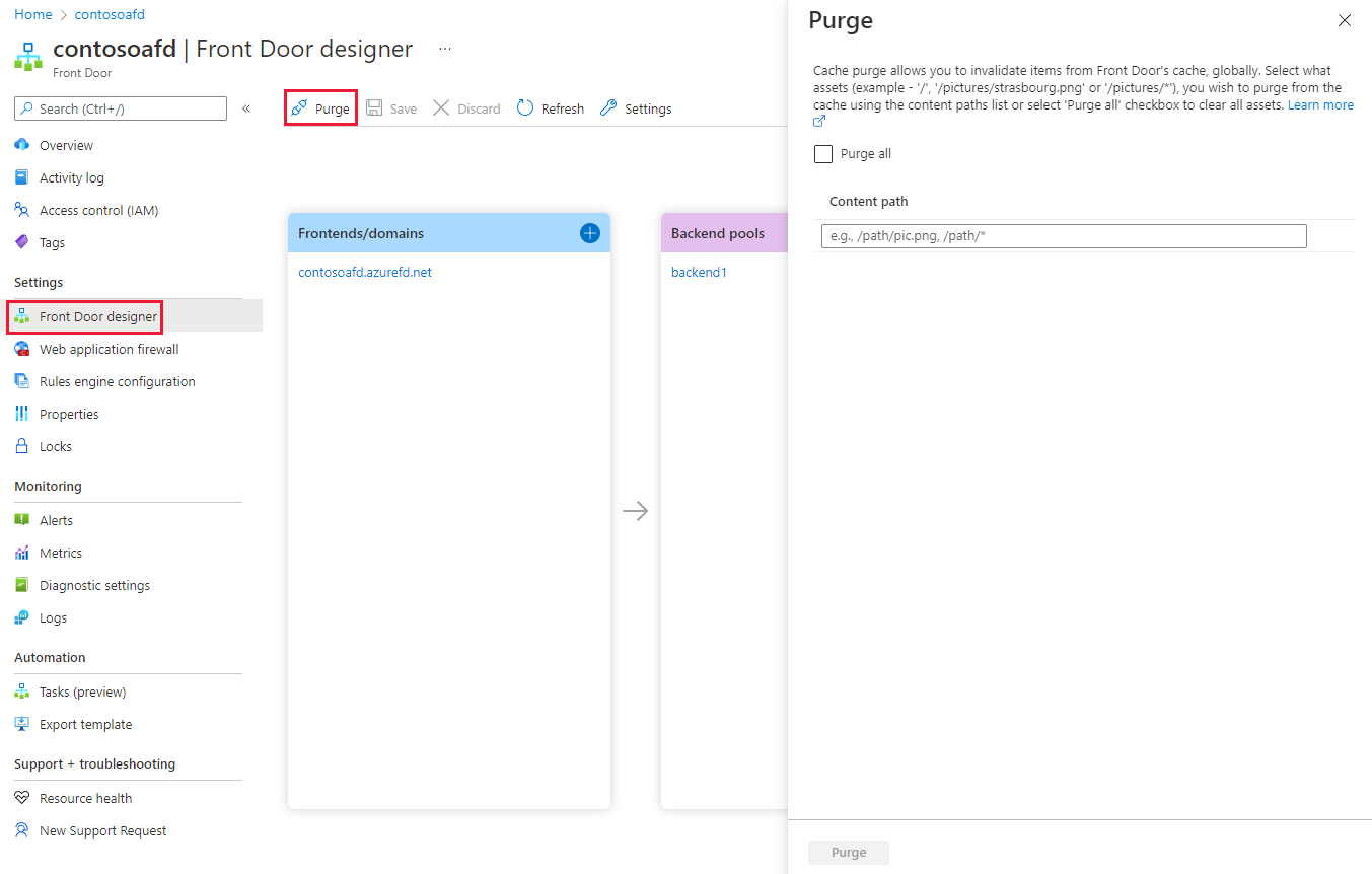 Unter Cachebereinigung in Azure Front Door erfahren Sie, wie Sie die Cachebereinigung konfigurieren.