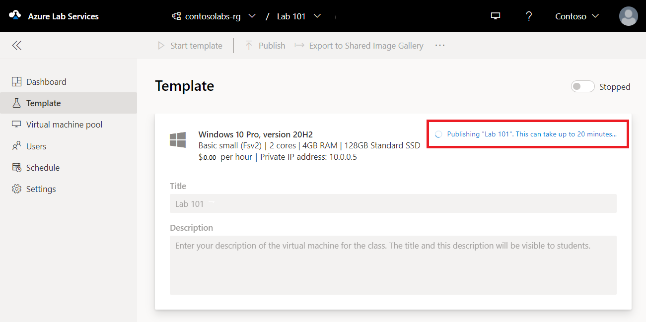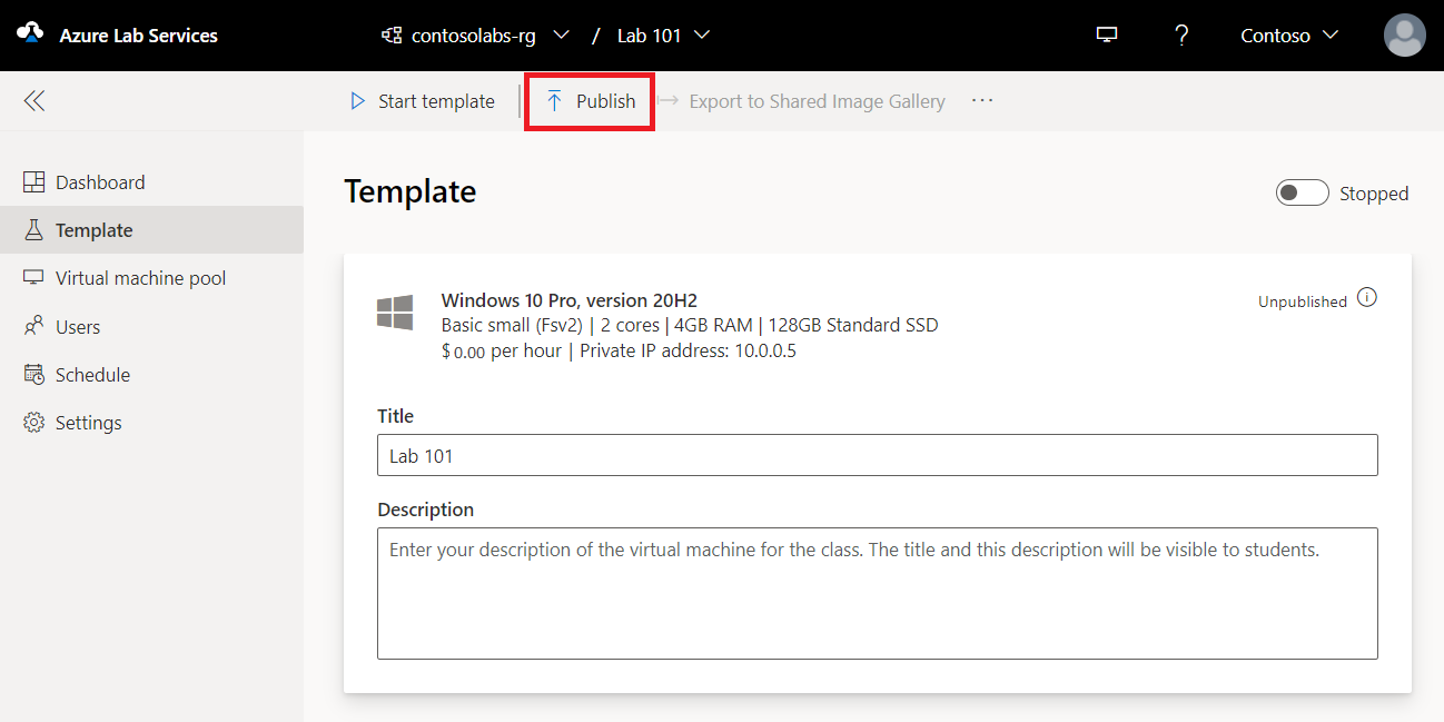 So veröffentlichen Sie das Lab und erstellen eine Lab-VM: