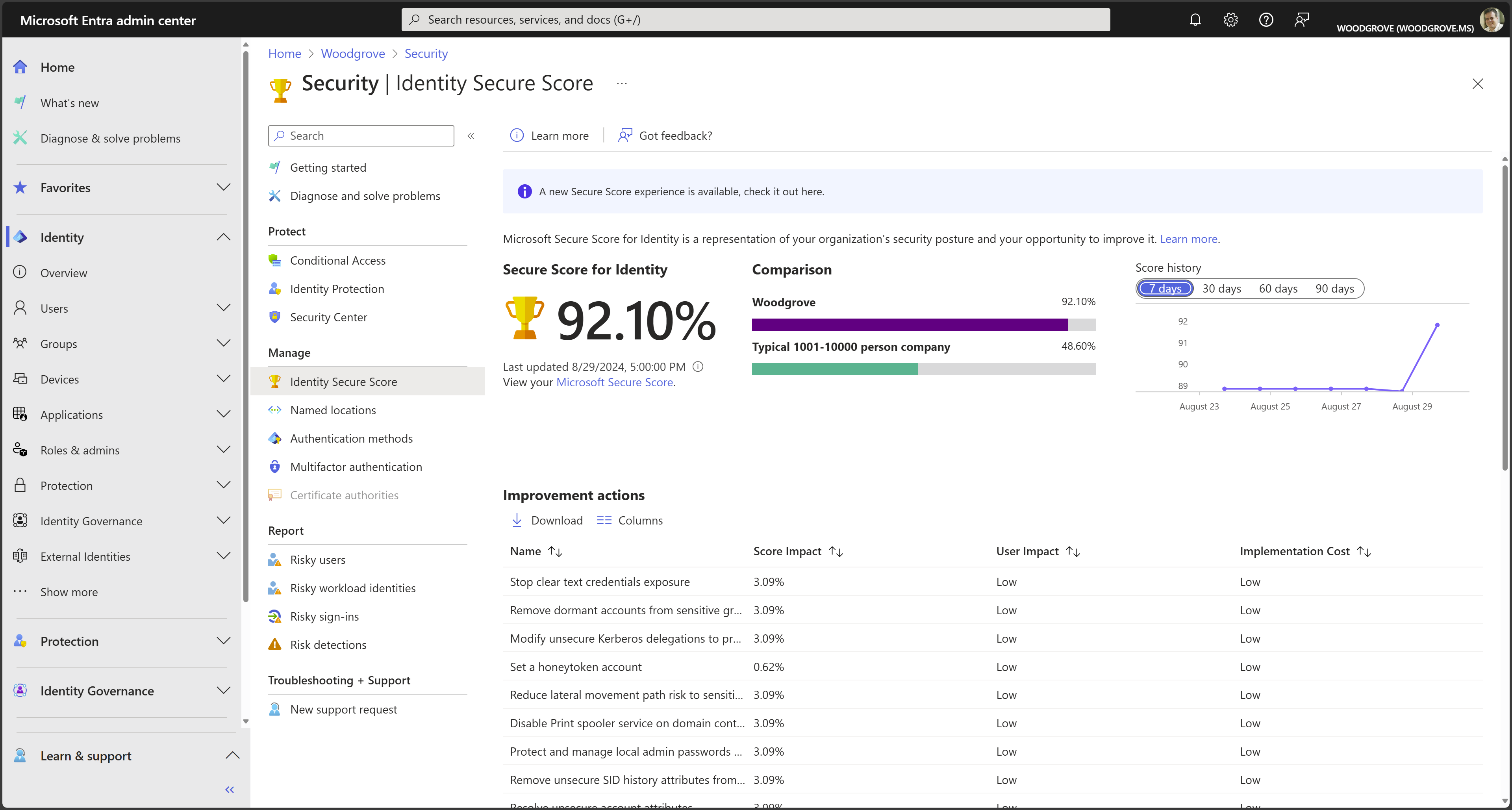 Wenn Sie sicher sind, dass alle diese Schritte abgeschlossen sind, verwenden Sie den Identity Secure Score von Microsoft, der die neuesten bewährten Methoden und aktuellen Sicherheitsbedrohungen enthält.