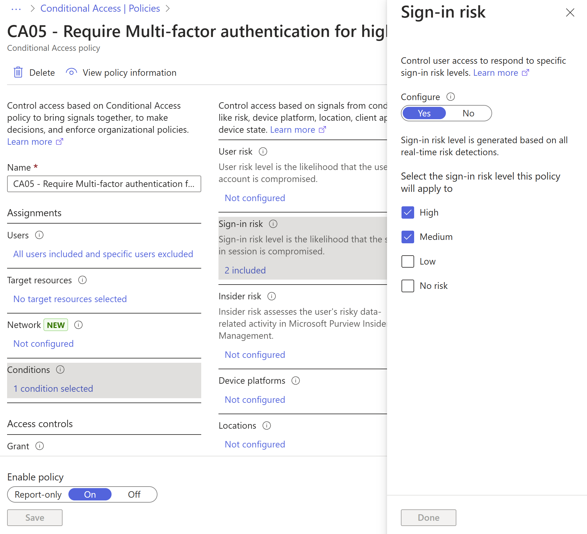 Weitere Informationen finden Sie im Artikel Konfigurieren und Aktivieren von Risikorichtlinien.