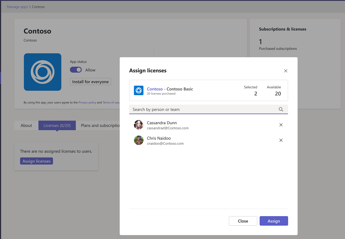 - Weisen Sie einem Team eine Lizenz zu , wenn Sie einem Team eine App-Abonnementlizenz zuweisen müssen.