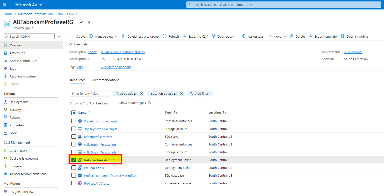 Es dauert etwa 45 bis 50 Minuten, bis die Installation von Profisee abgeschlossen ist. Während der Bereitstellung werden die aspekte angezeigt, die gerade ausgeführt werden, und sie können die Seite aktualisieren, um den Fortschritt zu überprüfen. Die Bereitstellung wird als abgeschlossen angezeigt, wenn alles abgeschlossen ist. Der Abschluss der Phase "InstallProfiseePlatform" bedeutet auch, dass die Bereitstellung abgeschlossen ist!