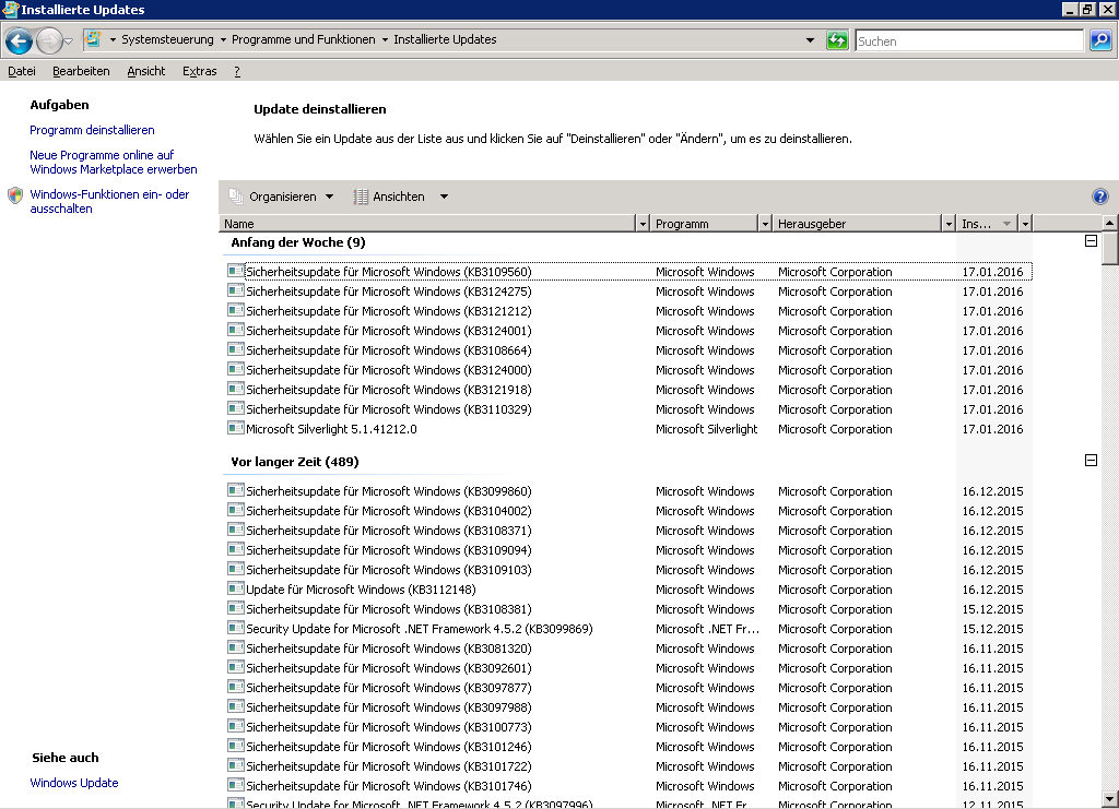 ich installierte auf meinem Windows Server 2008 x86 mit Service Pack 2 die neusten Windows Updates.