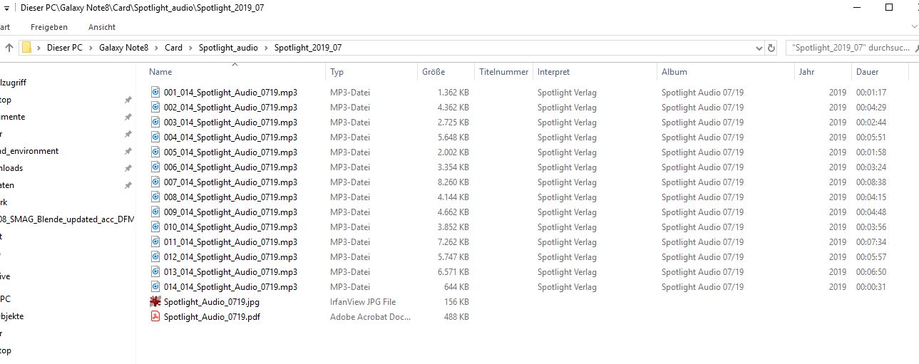 Das nervt ganz gewaltig. Ich verstelle die Spalten und sage Für Ordner übernehmen. Aber beim nächsten Mal ist wieder alles falsch. Also wenn ich mein usb-Laufwerk anschließe.
