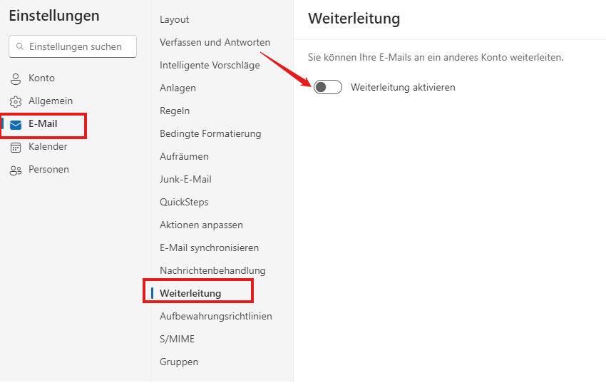 Überprüfen Sie die automatische Weiterleitung, um sicherzustellen, dass sie nicht aktiviert ist, E-Mails können an ungültige Postfächer weitergeleitet und an Junk-Postfächer zurückgeschickt werden, bevor sie Ihren Posteingang erreichen!