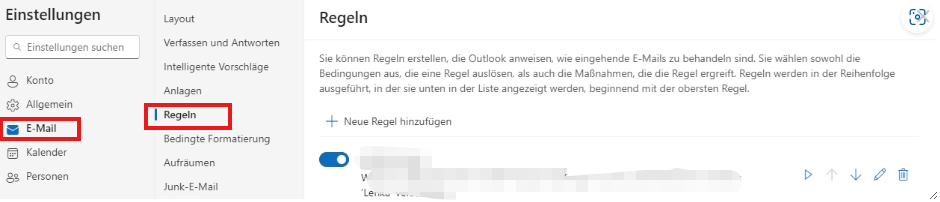 Klicken Sie in der oberen rechten Ecke der Seite auf das Zahnradsymbol, um das Einstellungsmenü zu öffnen "Mail - E-Mail - Regeln". Löschen Sie alle unerwünschten oder fehlerhaften Regeln.