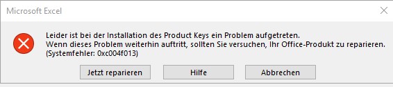 Ich habe dann versucht Office 2013 zu installieren damit ich weiter Arbeiten kann aber auch da kam bei der Installation die gleiche Fehlermeldung.