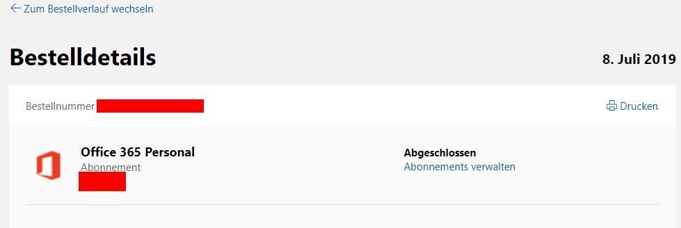 Rechnung für Office 365 Home drucken?