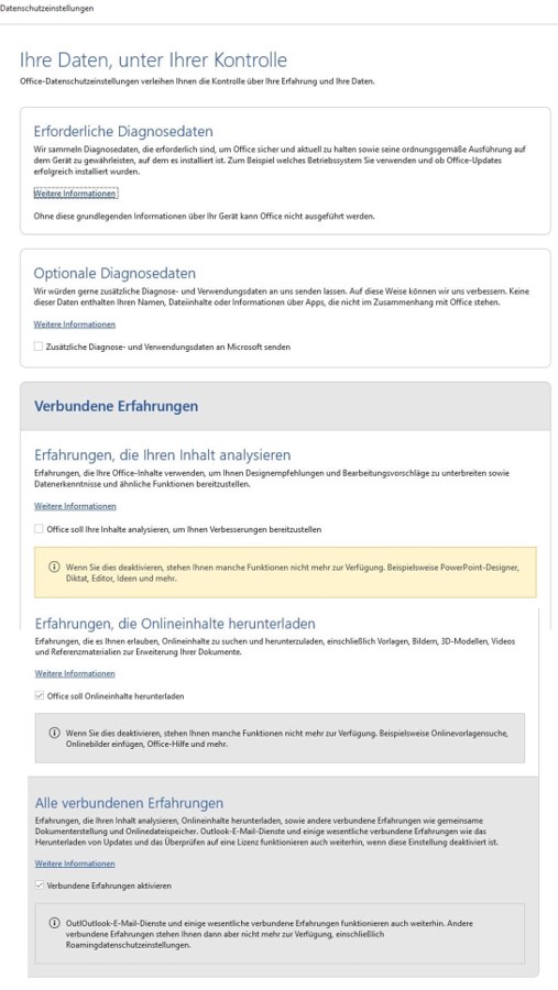 >"Office soll ihre Inhalte analysieren um Verbesserungen bereitzustellen."