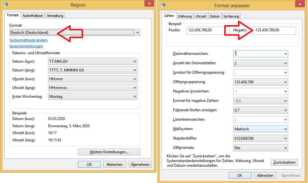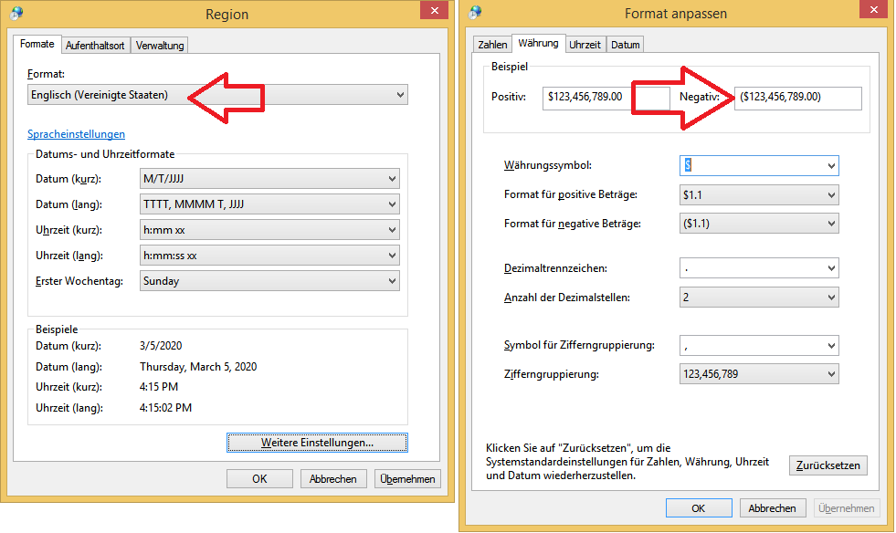 Excel denkt (oder hat gedacht) das die Region Englisch ist.