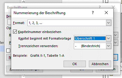 Ist es tatsächlich so, dass die Beschriftung von Abbildungen (bzw. Tabellen etc.) mit Bezug auf die Kapitelnunmmer nur bei Verwendung der Standardformatvorlagen von Word funktioniert und nicht mit anders lautenden? Wenn ja, warum? Läßt sich das Beschriftungsmenü nicht auch auf individuelle Überschriften erweitern?