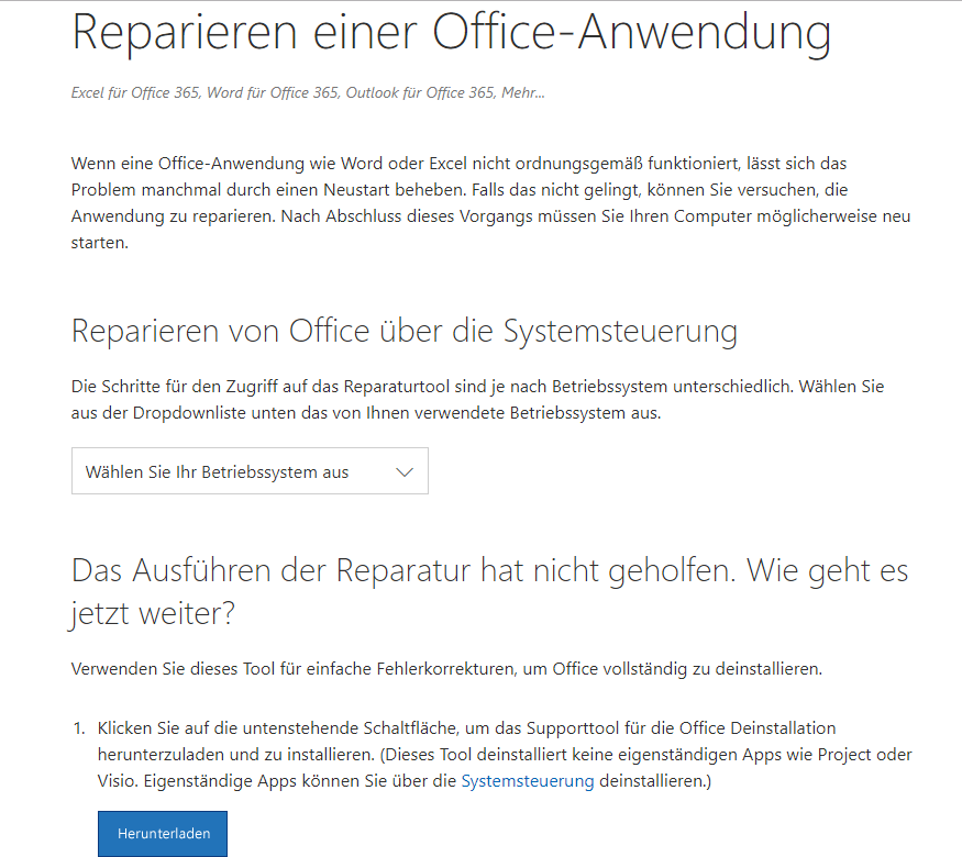 Normalerweise kann dieses Problem durch Reparieren von Office behoben werden. Bitte folgen Sie den Anweisungen indiesem Artikel.