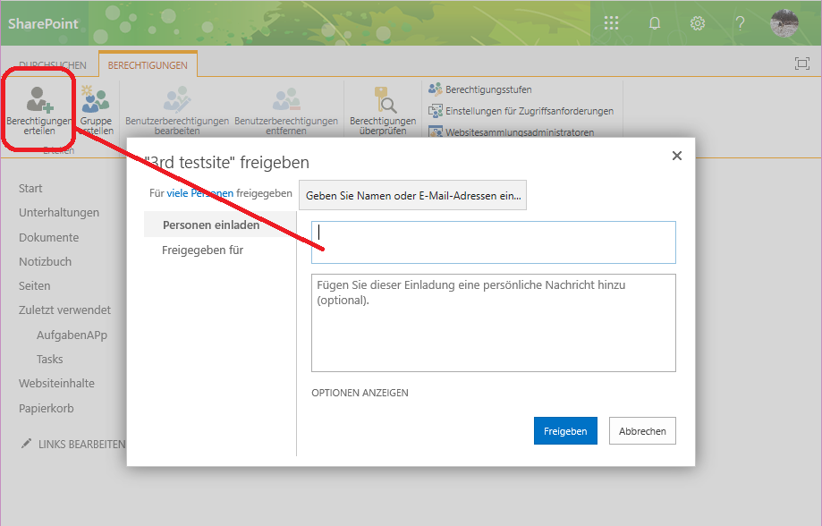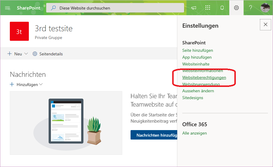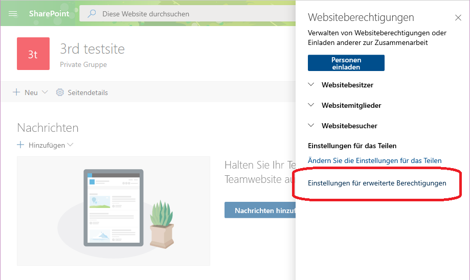 und diese wird auch im Explorer angezeigt. Ich habe jedoch keine Mitglieder der Seite hinzugefügt.