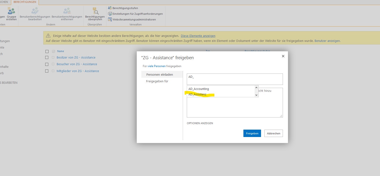 Mein Ziel ist es, die Berechtigungen über die AD Gruppen zu steuern, damit dieses einfacher zu administrieren ist.