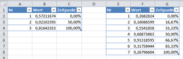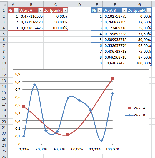 Ich muss am Ende alle Gangzykluskurven übereinander legen (daher auf 100%) egal wie schnell oder langsam dieser ausgeführt wurde, was wiederrum die unterschiedlichen Zeilenlängen darstellen. Ich habe jetzt öfters gelesen dass sowas mit Excel möglich ist, leider habe ich durch googlen bisher keine einleuchtende Methode gefunden. Tut mir leid falls ich mich undeutlich ausgedrückt habe! :)