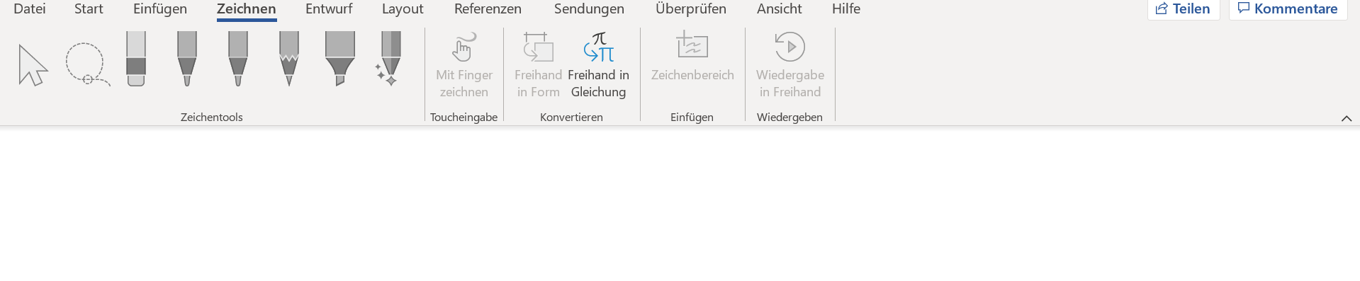 Hinweis: In Word müssen Sie sich im Drucklayout befinden, um mit Tinte zeichnen zu können. Wenn die Registerkarte Zeichnen abgeblendet ist, sodass Sie keinen Stift auswählen können, wechseln Sie zur Registerkarte Ansicht und wählen Sie Drucklayout.