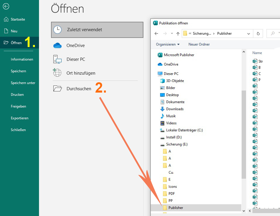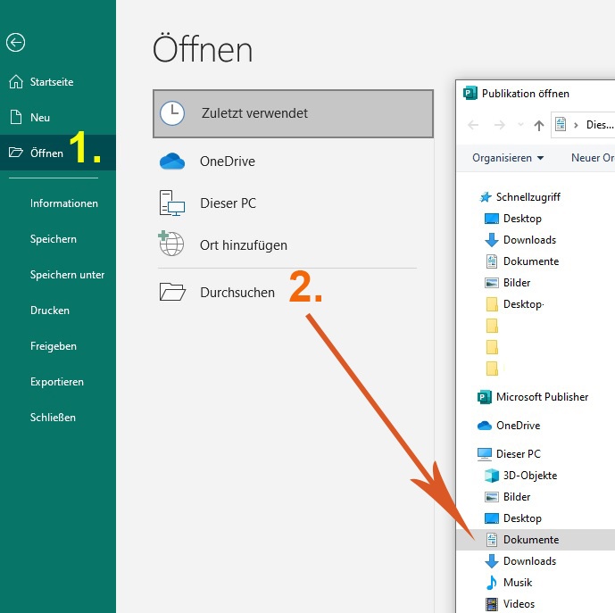Öffnen > zuletzt verwendet > rechts: Ordner