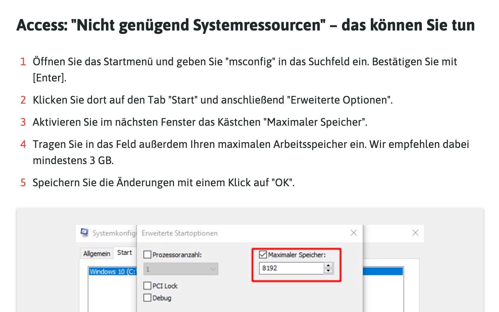 Die Reduktion von Access auf einen Prozessor hat zu 90% funktioniert; es gab eine Stapelverarbeitung, die dann doch wieder "3035 Nicht genügend Systemressourcen" zurückgab. Allerdings mit erneutem Aufruf beim x-ten Mal lief er durch.
