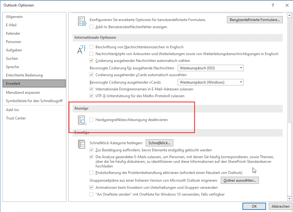 Einstellungen einchecken - Nach Grafikeinstellungen suchen - ist Hardwarebeschleunigung aktiviert?