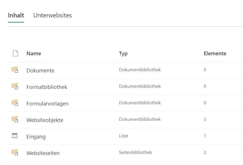 Nun scheitert mein Vorhaben bei Punkt 7 der Anleitung. Beim Auswählen der Option "Daten aus einer SharePoint-Liste auf dieser Site abrufen" habe ich keine Möglichkeit, meine Liste auszuwählen. Stattdessen steht darunter: "Auf dieser Website ist keine Liste verfügbar".