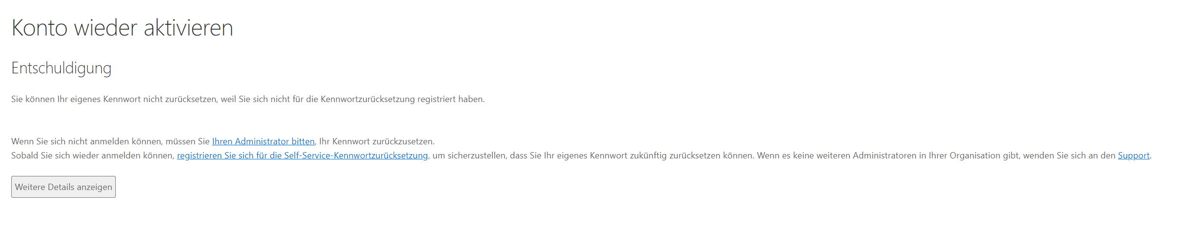 Die Support-Optionen im Partnercenter sind wegen der falschen Anmeldung auch nicht verfügbar.