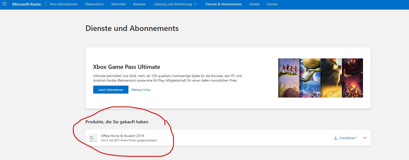 Wechseln Sie zu https://account.microsoft.com/services/, und installieren Sie Office von dort aus neu.