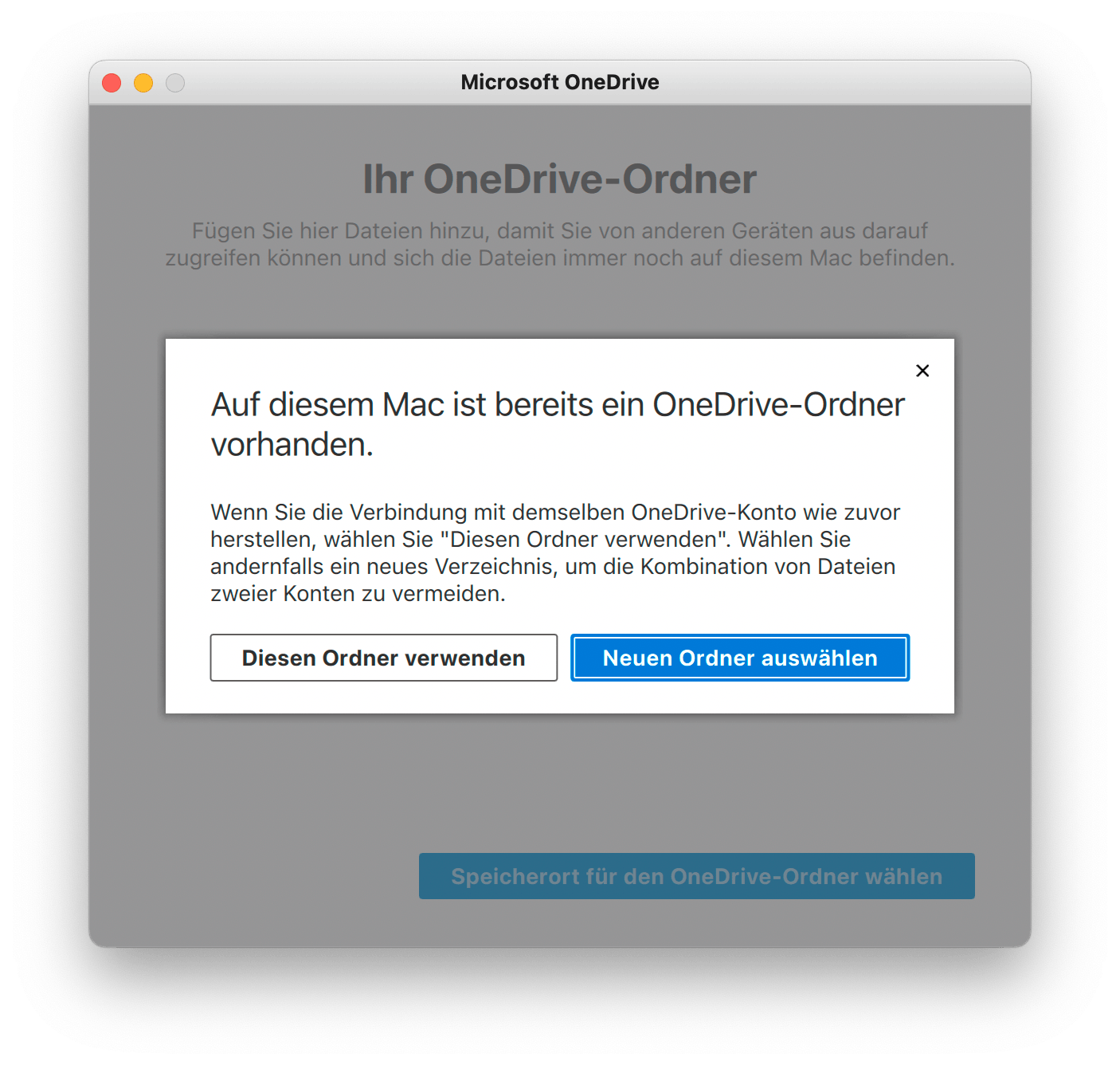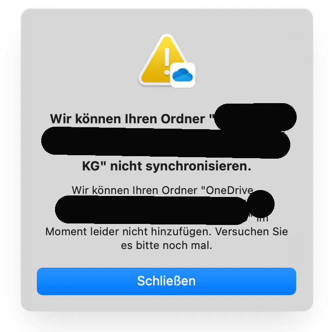 Ich versuche neben meinem Familenkonto ein Geschäftskonto zu synchronisieren. Wenn ich einen bestehenden Ordner auswähle, dann kommt dieser geniale Dialog...