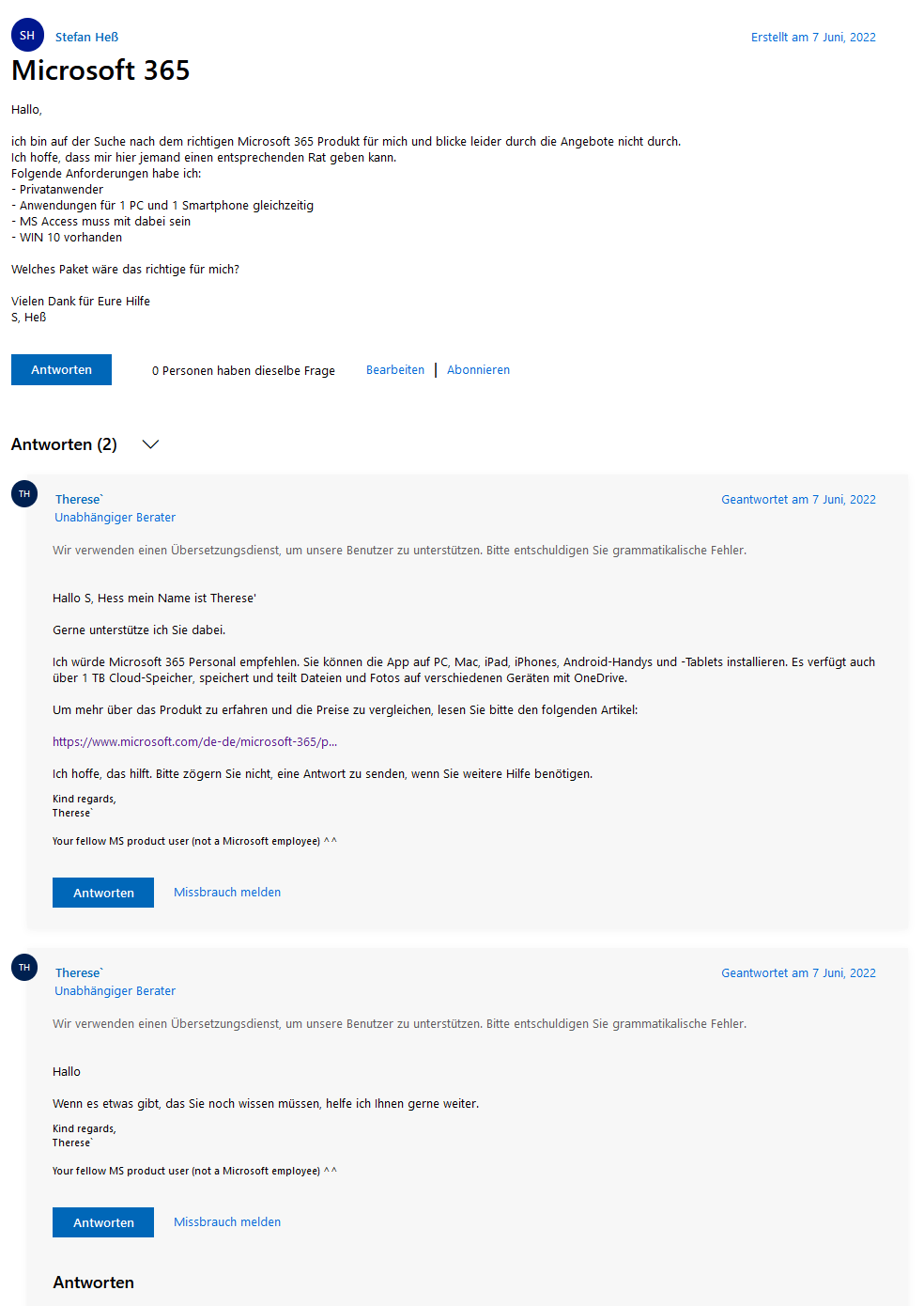 Hallo S, Hess mein Name ist Therese'