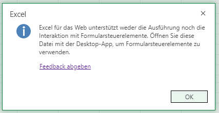 Du kannst gern dein Feedback direkt im Excel Online abgeben (Feedback an Microsoft senden, unten rechts oder direkt in der Fehlermeldung). Man kann auch gern seine Verbesserungsideen den Entwicklern in dem Excel Feedback Portal präsentieren, sodass andere Mitglieder auch zustimmen und kommentieren können. Wenn viele die Idee mögen und zustimmen, werden die Entwickler offiziell antworten und möglicherweise die Idee implementieren.