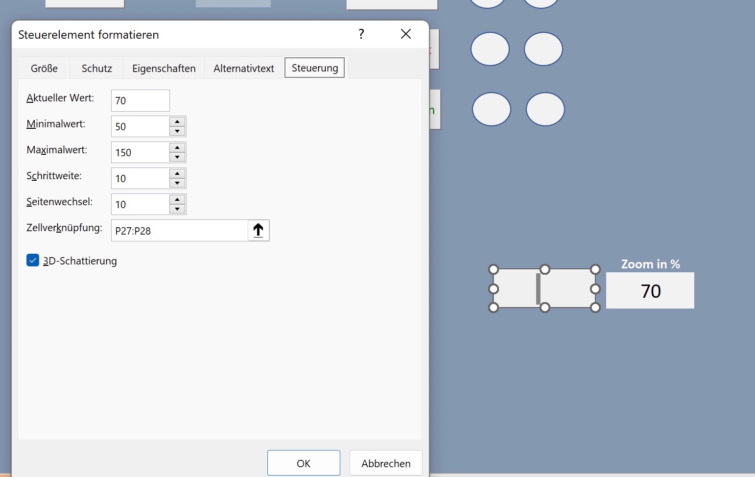 Du kannst einer Zelle den Wert des Scrollbalken zuweisen.