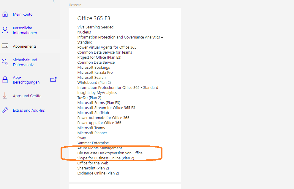 Nach deinen Angaben wurde dir keine Lizenz zu den Desktopversionen zugewiesen.