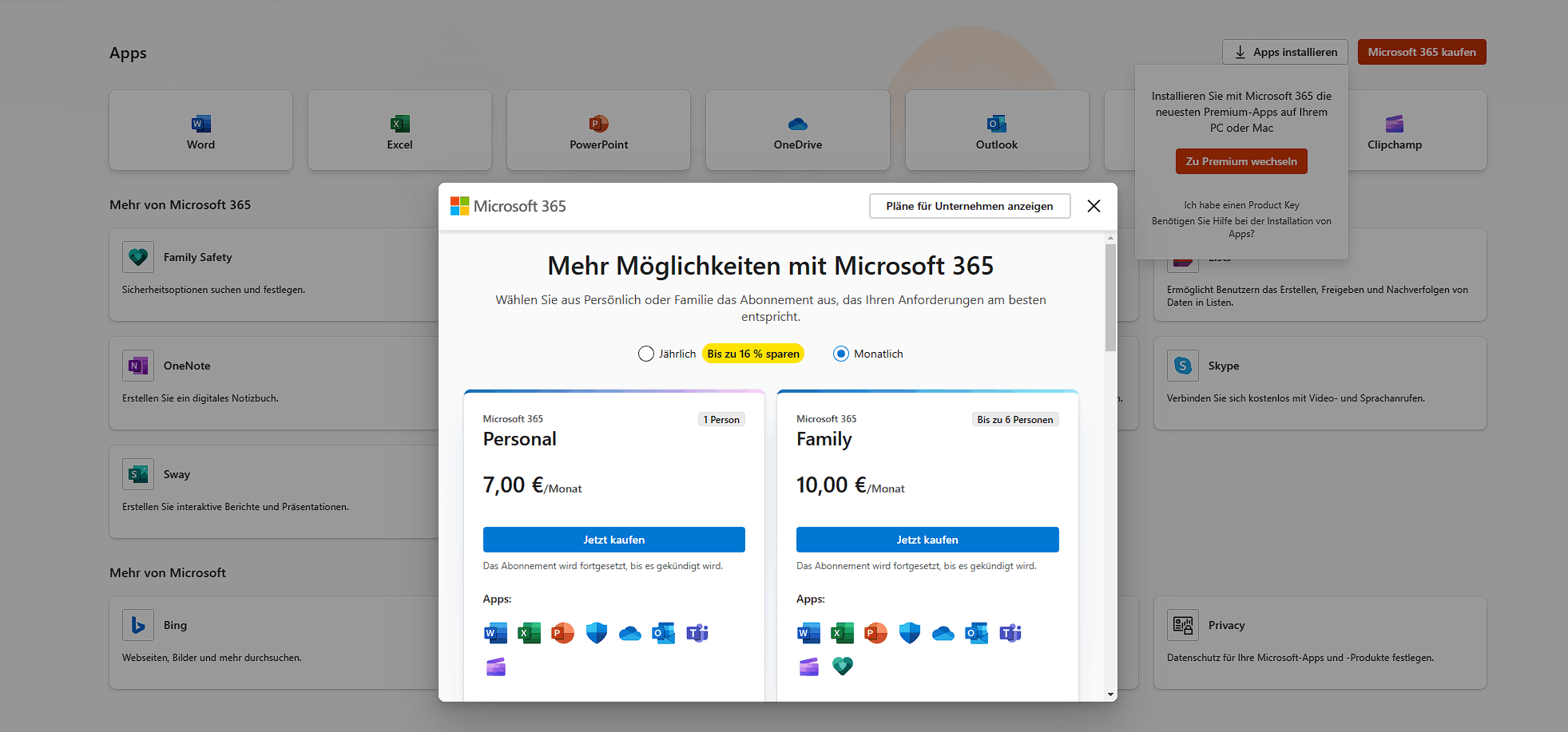 Suchen Sie den von Microsoft angehängten Link zur Installation von Office a PC: