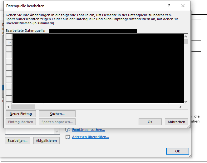 ca. 10 Mitarbeiter bearbeiten unterschiedliche Serienbriefe. Die Serienbriefe greifen auf eine Adressen-Excel-Datei zu für die Empfängerliste. Meine erste Idee ist Office 365 zu nutzen und über OneDrive/Sharepoint die Daten dort abzulegen und die Mitarbeiter können darauf zugreifen. Problem ist dabei nur, dass sobald 2 Mitarbeiter in einem Serienbrief arbeiten wollen, ist in Word der Bereich der Empfängerliste ausgegraut und es ist nicht mehr möglich der Empfängerliste einen neuen Datensatz hinzuzufügen. Vielleicht hatte jemand eine ähnliche Anforderung und/oder eine Lösung.