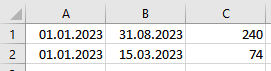 | 01.01.2023 | 15.01.2023 | 15 |