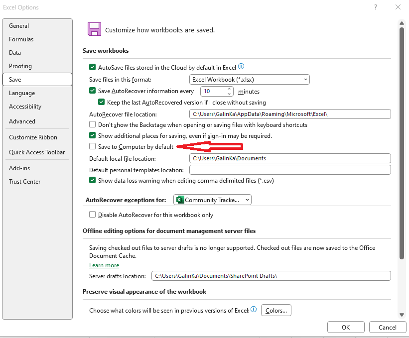 Eine Excel Datei die aus einem Netzlaufwerk heraus bearbeitet wird, öffnet nach jeder Eingabe ein One Drive Fenster für automatisches Speichern.