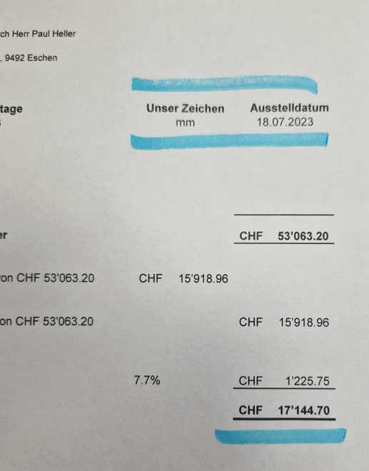 ich hänge mal ein paar fotos an. das blau-markierte fehlt einfach wenn ich die datei auf diesem pc drucke. also oben fehlt "unser zeichen mm und austellungsdatum mit datum" und unten fehlt einfach der betrag im feld "17'144....", aber die unterstriche werden gedruckt.