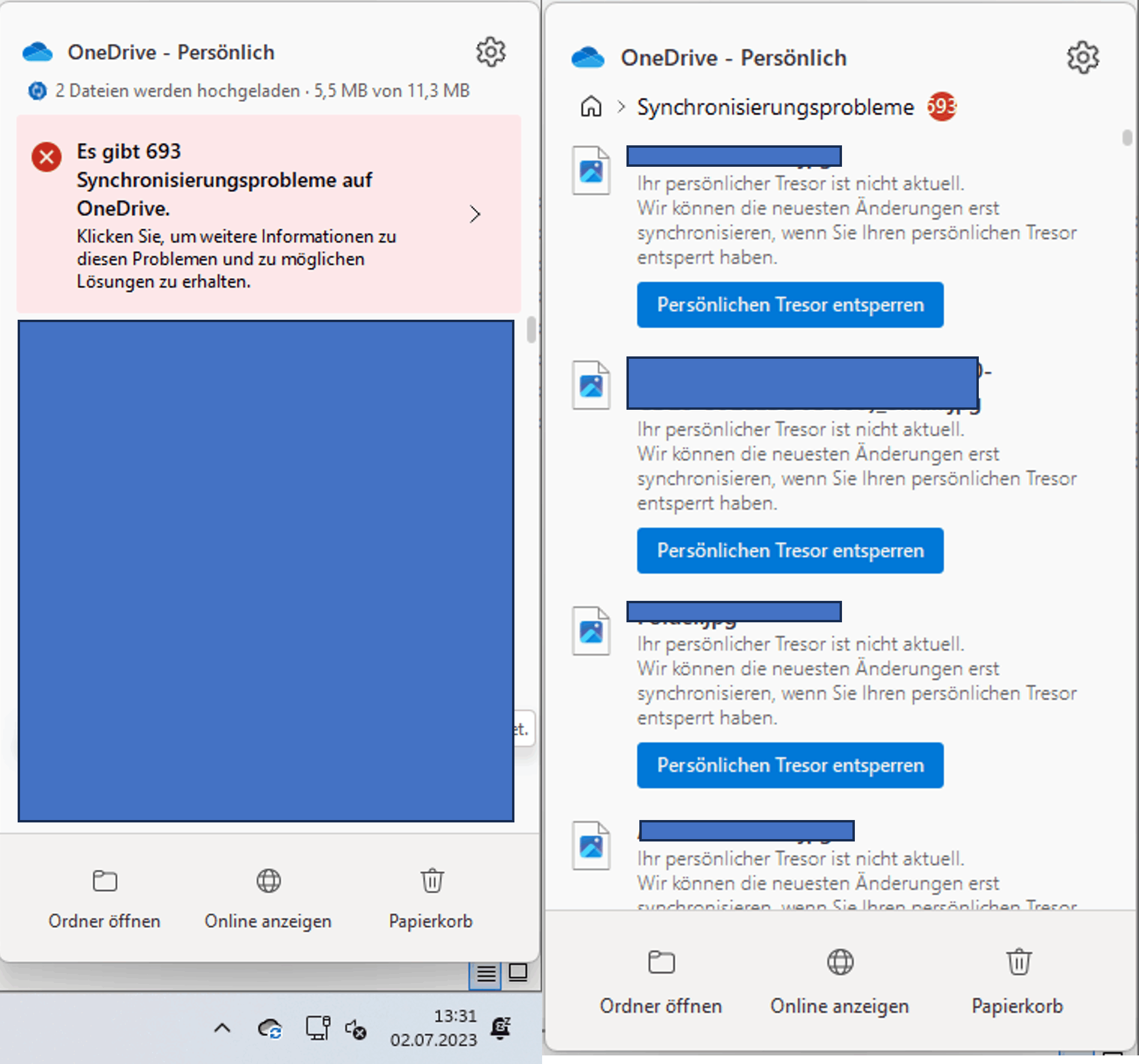 - Klicken Sie auf den Link, um Probleme mit dem persönlichen OneDrive-Tresor zu beheben, der nicht auf dem neuesten Stand ist:
